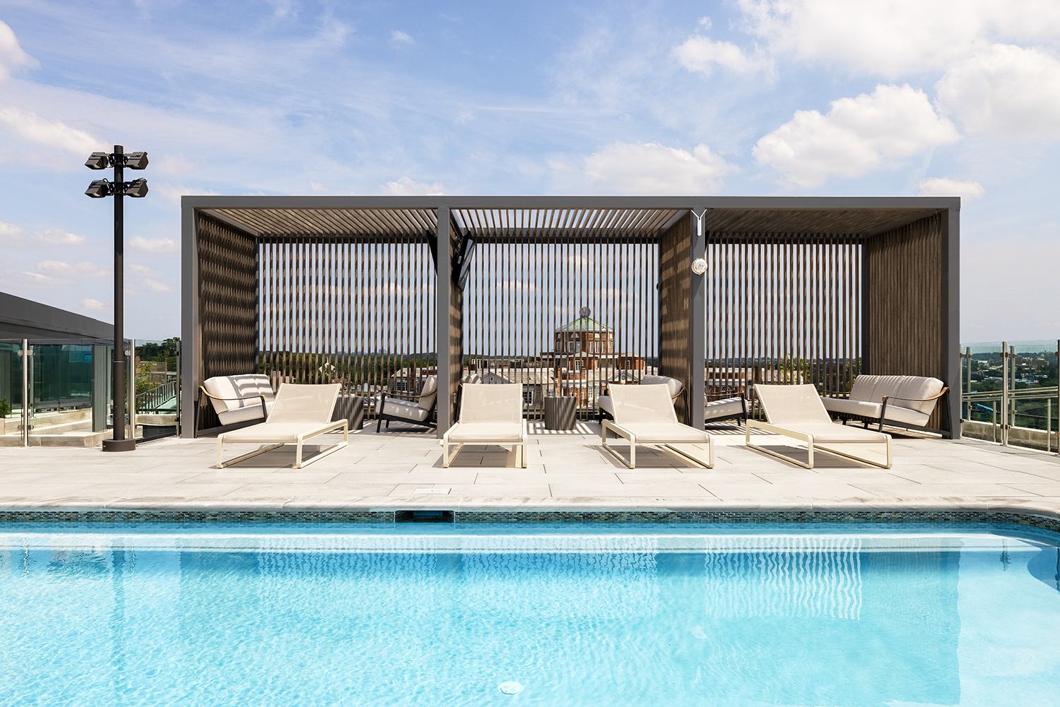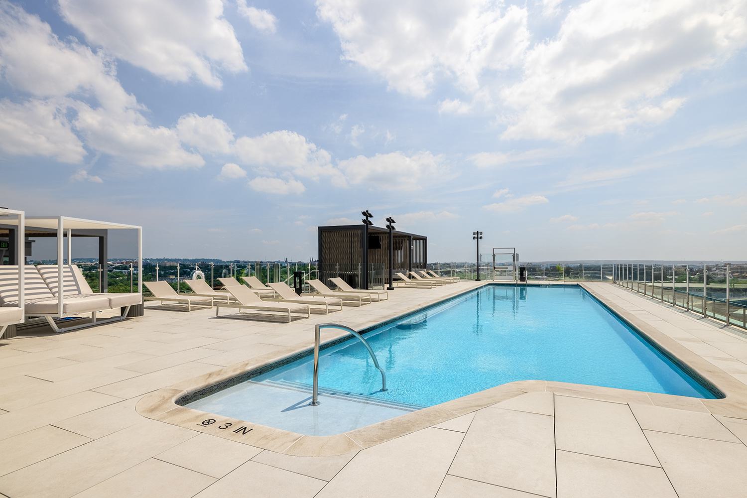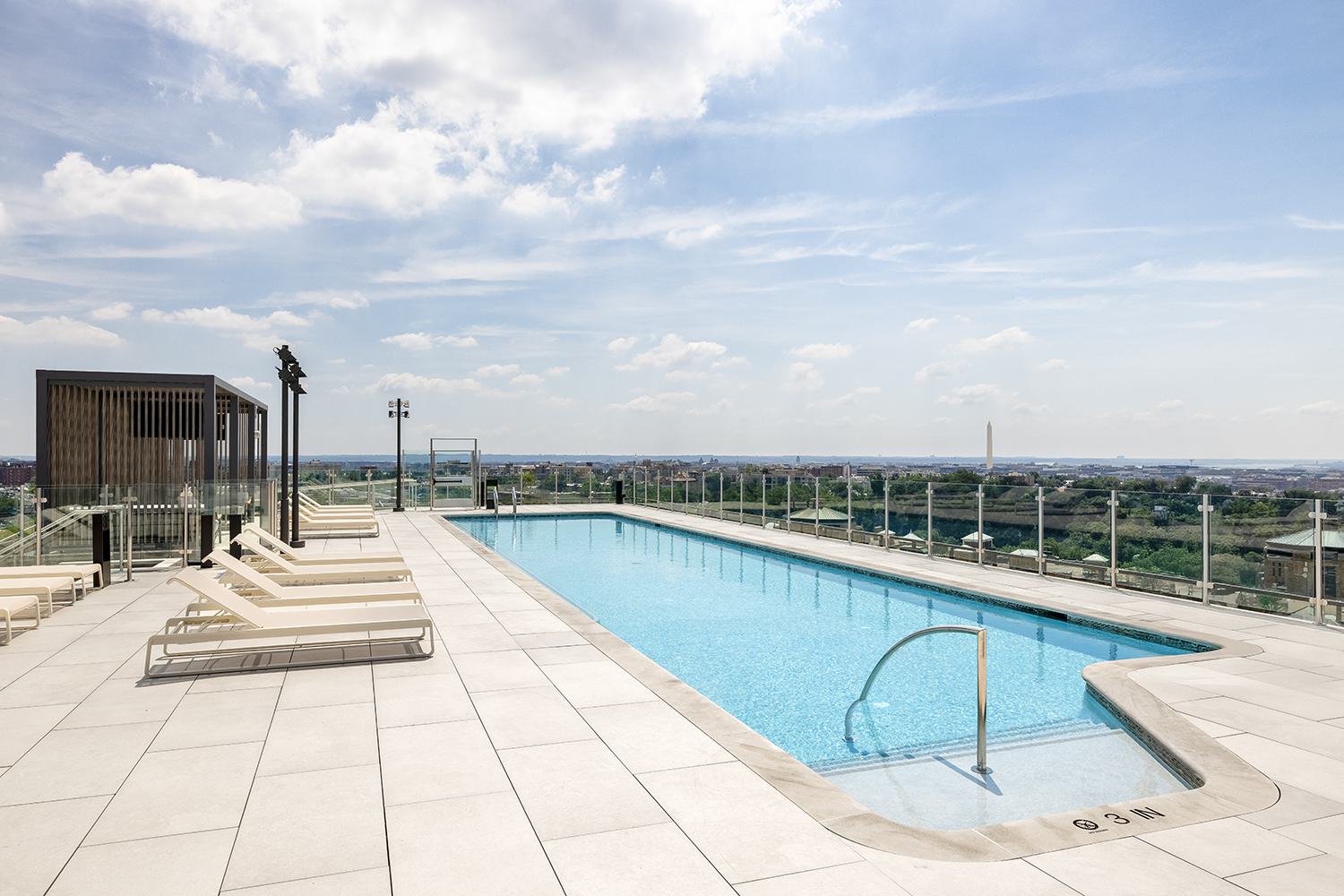 - Rooftop pool and deck with private cabanas, grill stations, fire pits, and panoramic views of Woodley Park and DC