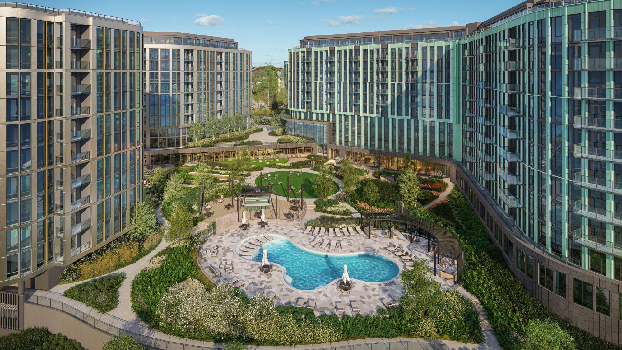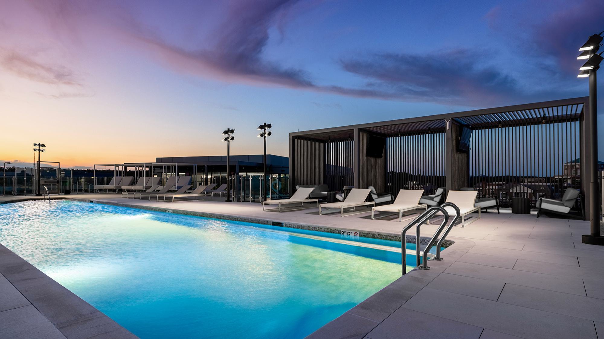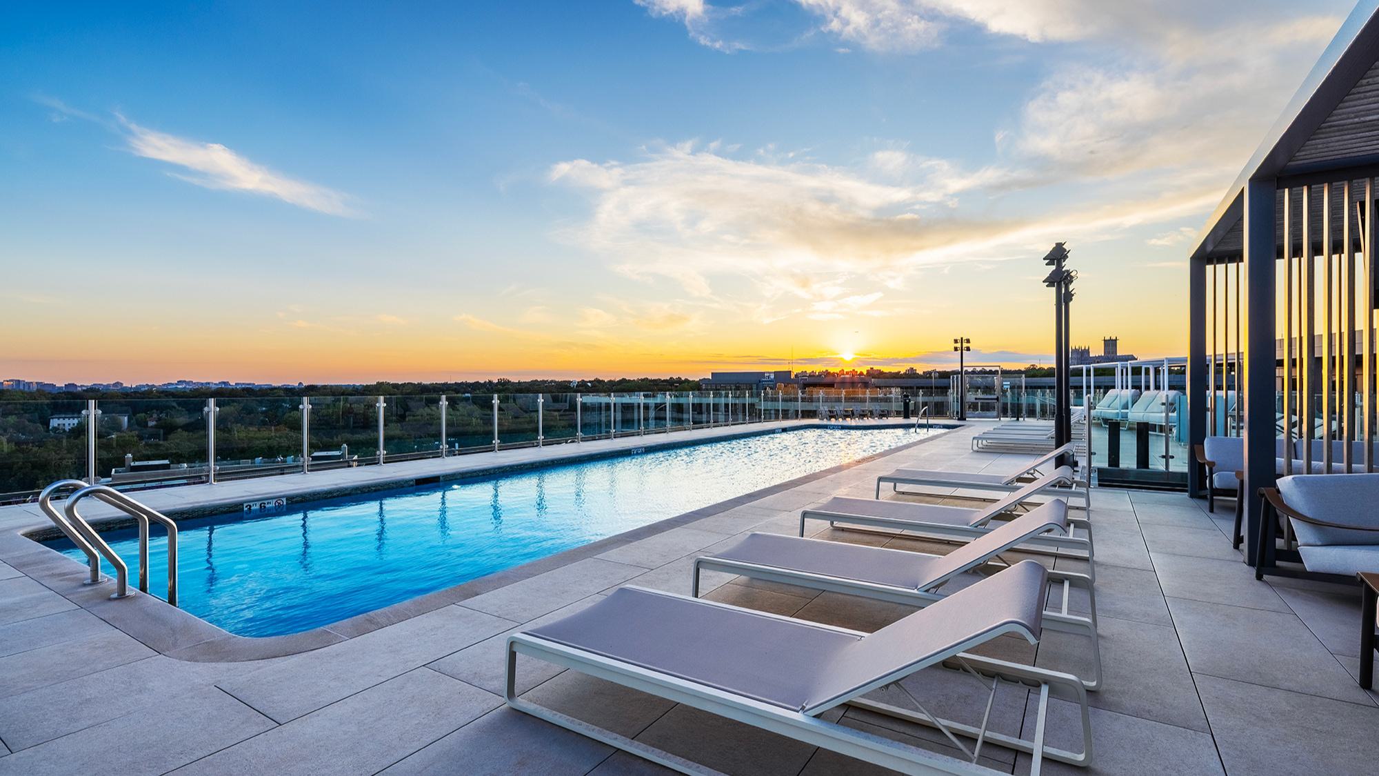 - Rooftop pool and deck with private cabanas, grill stations, fire pits, and panoramic views of Woodley Park and DC